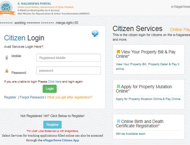 Step 1: The applicant must visit the official website of e-NagarSewa portal of Uttar Pradesh Municipal Corporation to make the property tax payment.