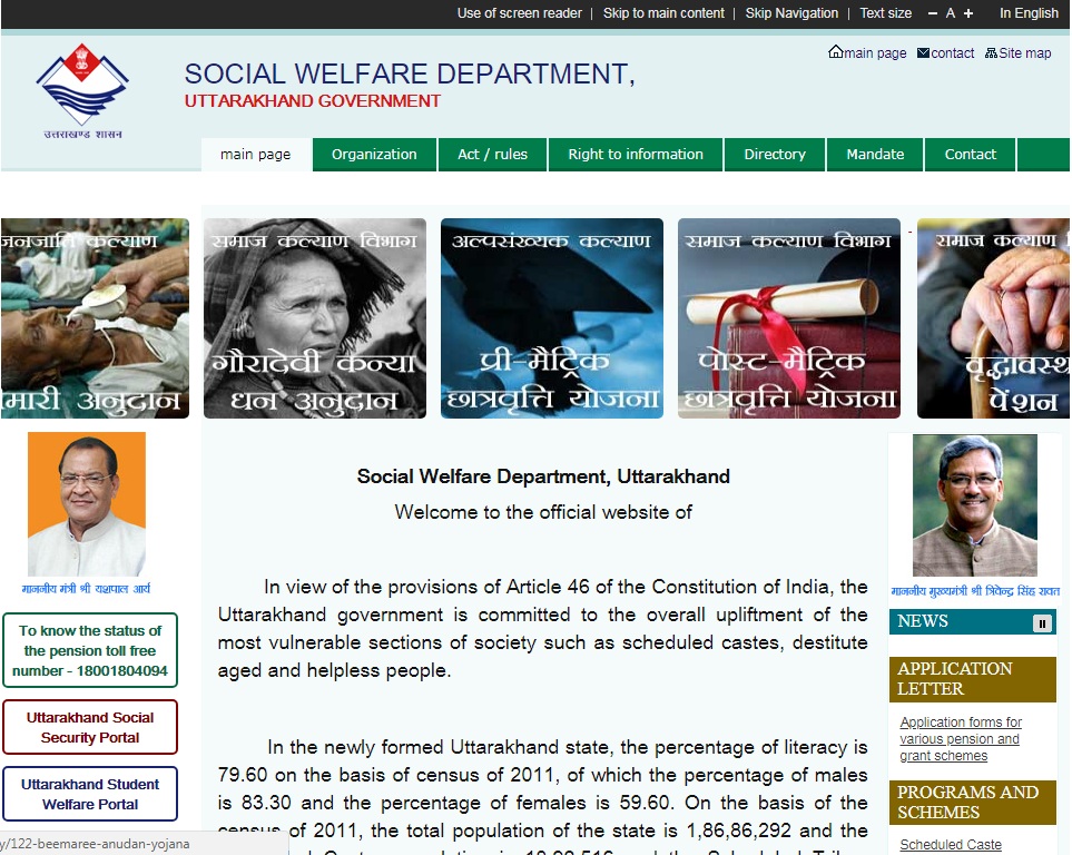 Step 1: Please visit the State e-governance portal Social Welfare Department of Uttarakhand Step 2: Click on " Know the status of your pension " option available to the left of the web portal.