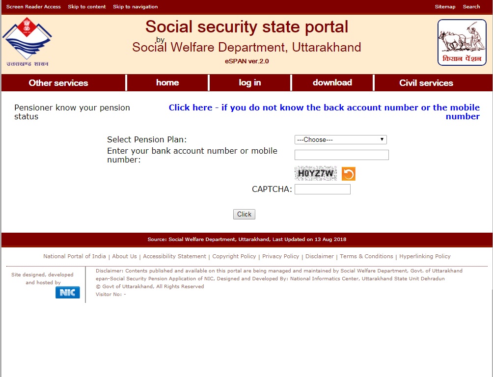 The State Government of Uttarakhand has introduced an online facility to check the status of pension. Check your application status through the following steps as mentioned below: