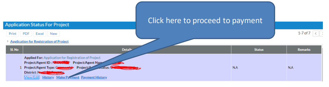 Step 8: To register your project open you have to select the “Application for Registration of Project” link.