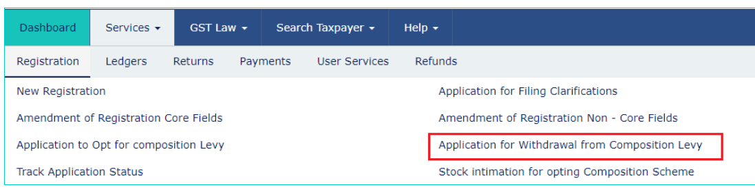 The taxpayers must follow the below steps to Withdrawal from Composition Levy online.