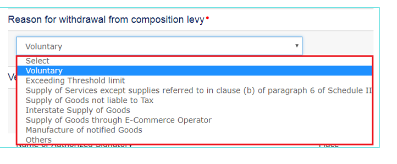 Step 7: Then select the Reason for withdrawal from Composition Levy from the drop-down list.