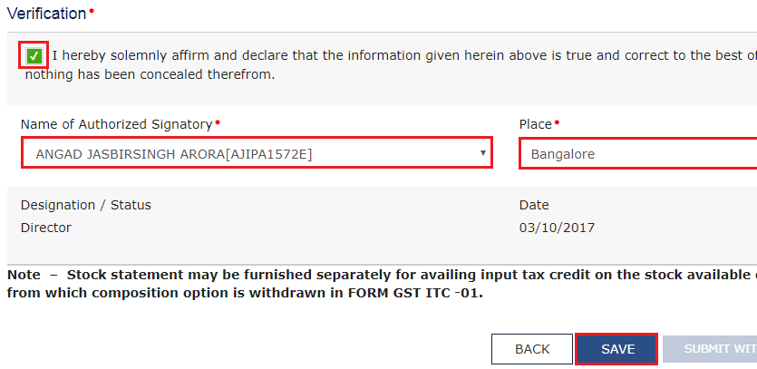 Step 9: Finally, select the Authorized Signatory from the drop-down menu.